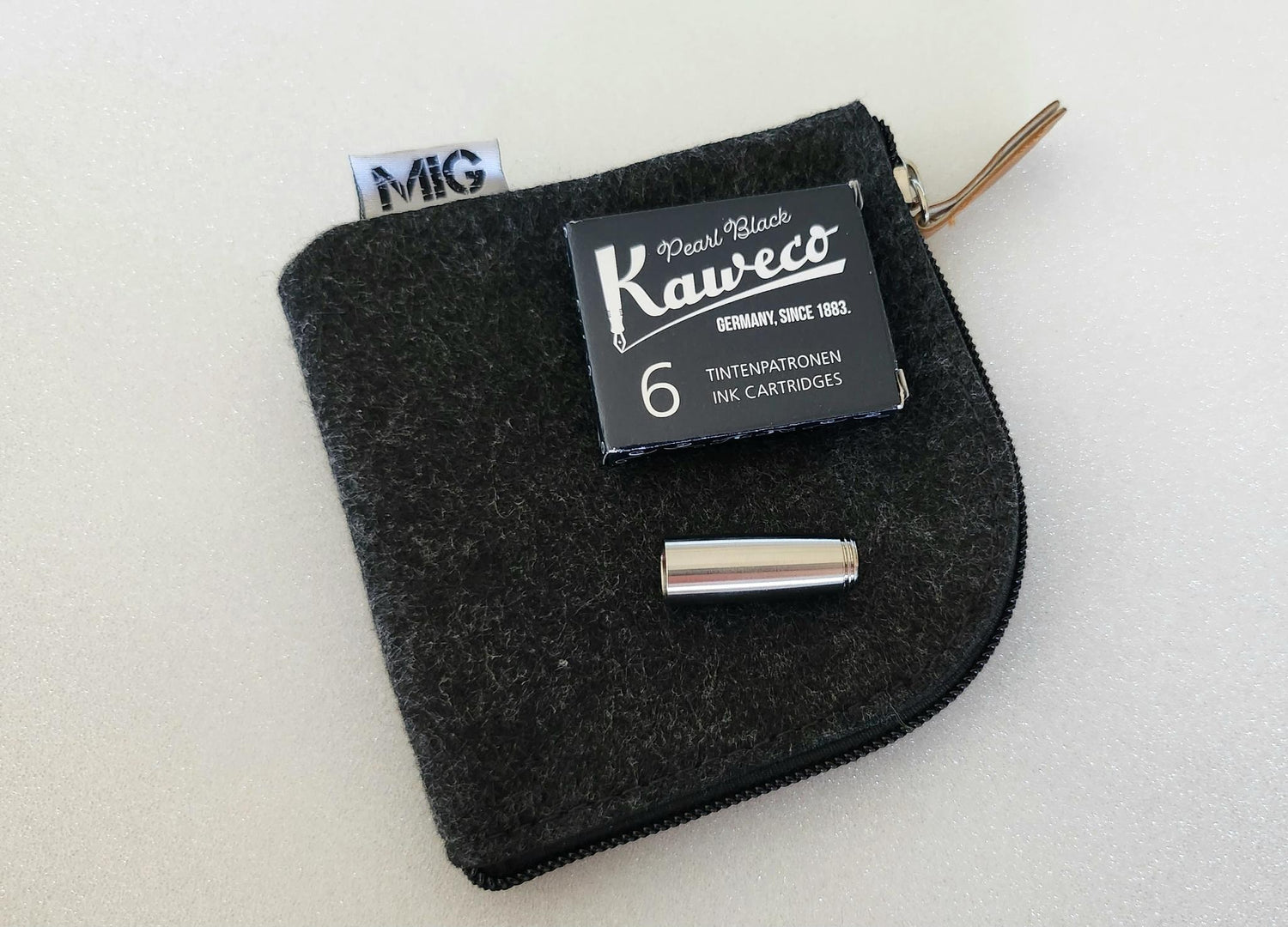 The kit contains one mini barrel and a pack of Black Kaweco cartridges.