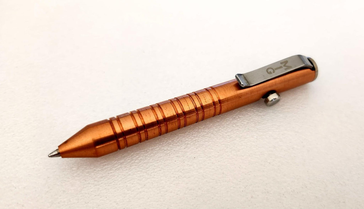 Essentially just the more compact version of our standard copper bolt action pens, the Mini Mig is one of the smallest and slimmest clipped bolt action pens in the world.