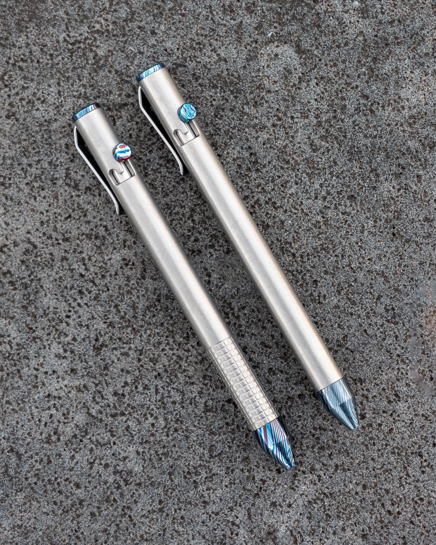 Some models come with Timascus Accents, on these ones we completely replace the nib, bolt and end cap. Timascus is all hand blued by myself so no two pens are the same in either pattern or tone.